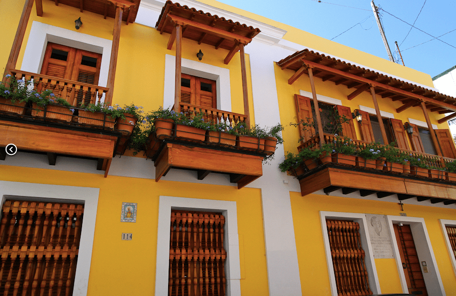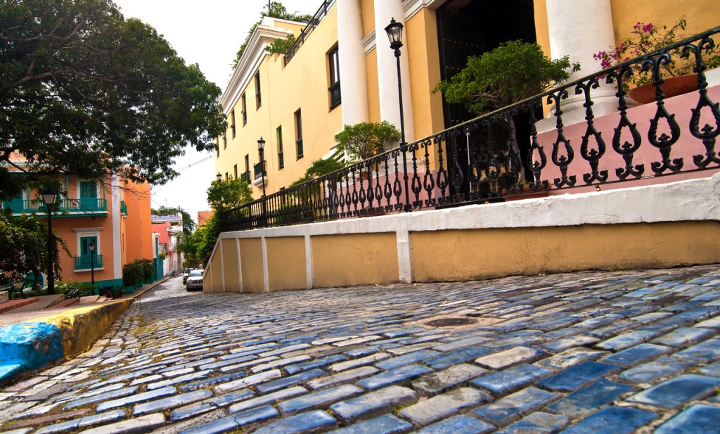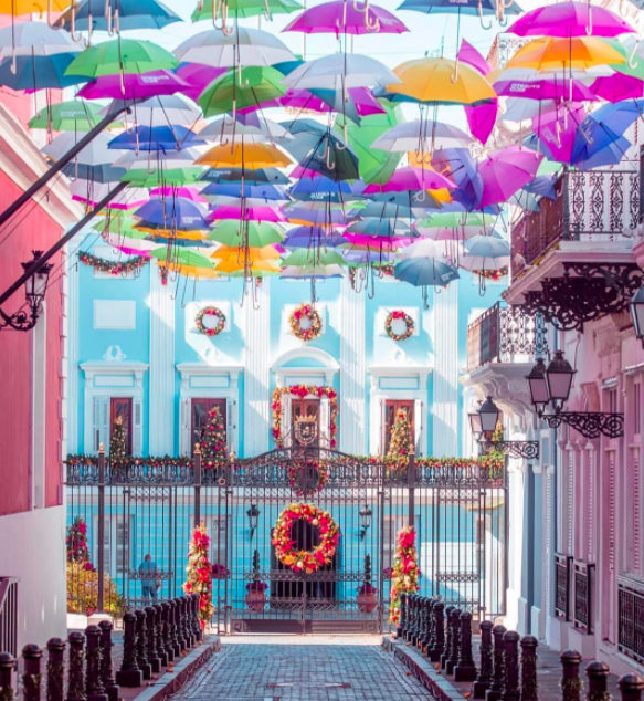 Umbrella Street, in Old San Juan, is installed during summer and may not be available year-round. Instead, you might find just the Puerto Rico flag like we did. But it was still pretty. At the end of the street, you will see a blue building called Governor Mansion. If you are lucky, you may be able to catch some local dance right behind Mansion Gate.